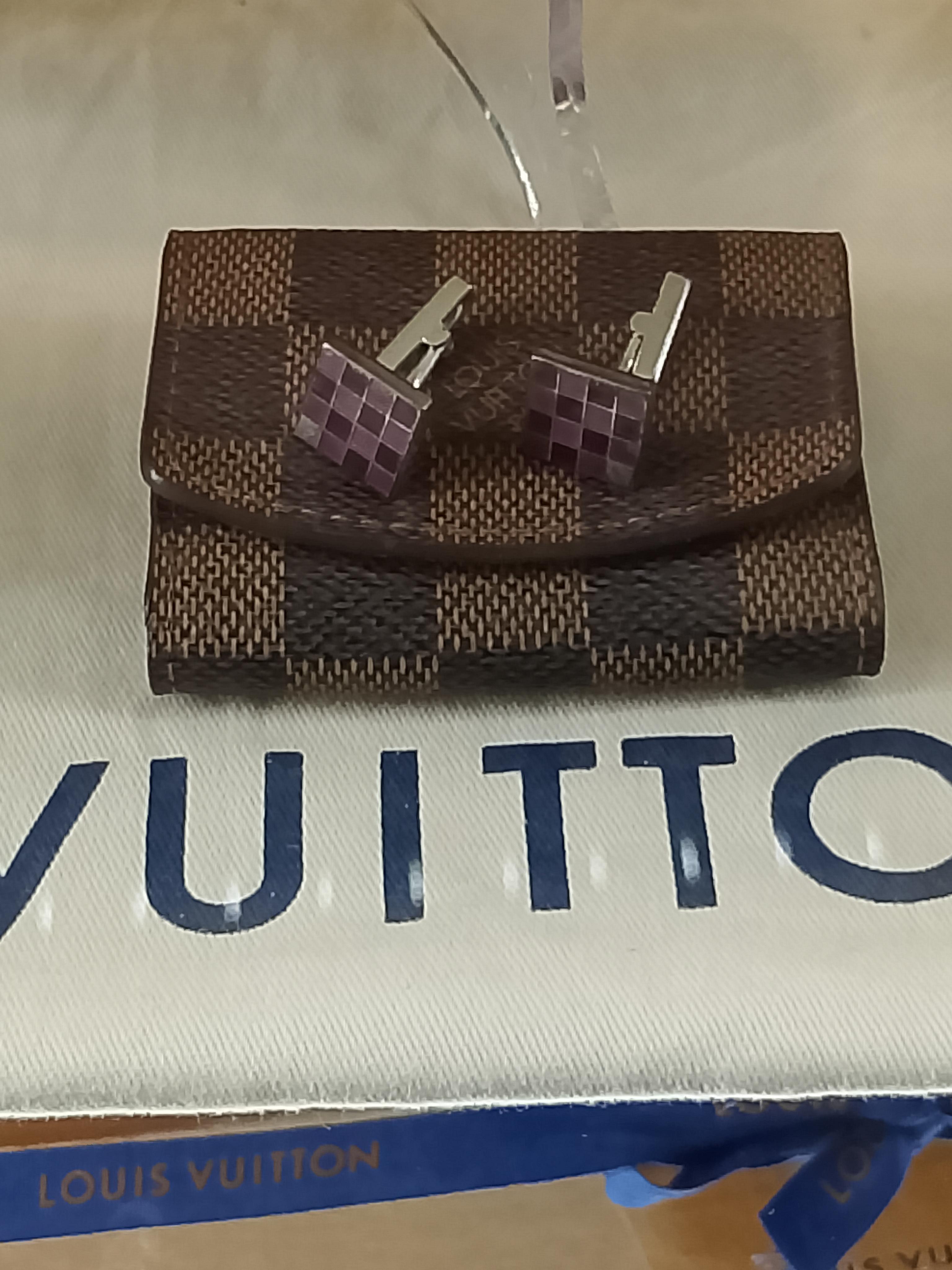Set di gemelli Louis Vuitton con custodia in tela Damier Ébène