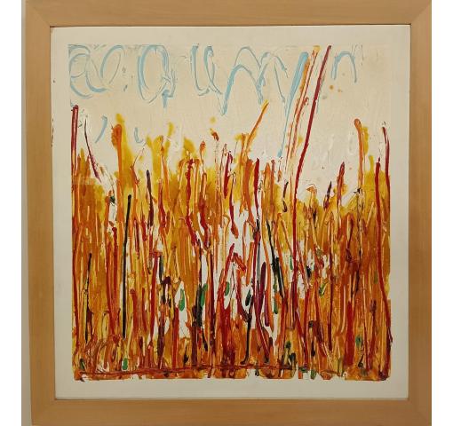 Dipinto smalto e acrilico su tela, cm. 100x100, firmato al retro,